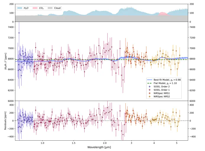 We report the combined JWST NIRSpec/G395H and NIRISS/SOSS transmission spectrum of the transiting super-Jupiter HAT-P-14 b, from 0.60 $\mu m$ to 5.14 $\mu m$. Initial analysis of these data reported a near-featureless spectrum at NIRSpec wavelengths range (2.87 $\mu m$ to 5.14 $\mu m$) consistent with the small atmospheric scale height of the planet and unexplained bumps and wiggles at NIRISS wavelengths range (0.6 $\mu m$ to 2.8 $\mu m$). Here, we produce a self-consistent spectrum of HAT-P-14 b’s atmosphere with an up-to-date reduction. We detect H$2$O (3.09 $\sigma$) both across NIRISS/SOSS wavelengths range and at the bluest end of NIRSpc/G395H as well as a gray cloud deck (1.90 $\sigma$). We constrain the atmospheric metallicity of HAT-P-14 b to be roughly Solar, with [Fe/H] $= -0.08^{+0.89}{-0.98}$, consistent with the planet mass-metallicity relationship. The differences compared to previous works are likely due to the improved STScI \verb|jwst| pipeline, which highlights the need to reanalyze the early NIRISS/SOSS transiting exoplanet targets with the latest methods. As HAT-P-14 b is placed as the 805th best target for transmission spectroscopy according to Transmission Spectroscopy Metrics (TSM), our results showcase JWST’s unparalleled photometric precision which can easily characterize a thousand exoplanets’ atmospheres through transmission spectroscopy.
